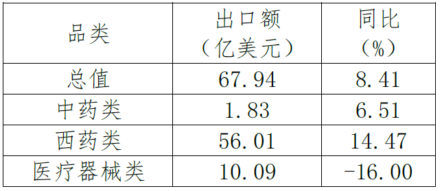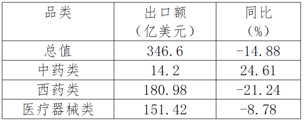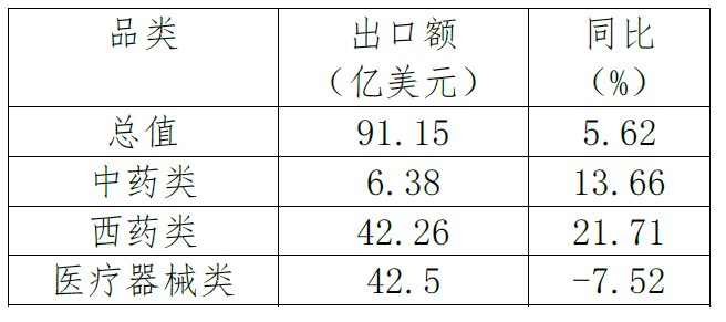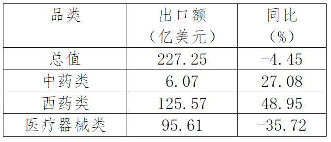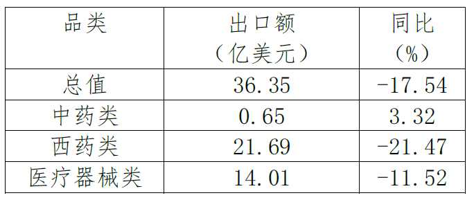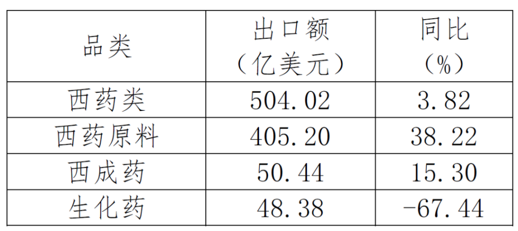 表2. 2022年1-9月西藥類產(chǎn)品出口情況
