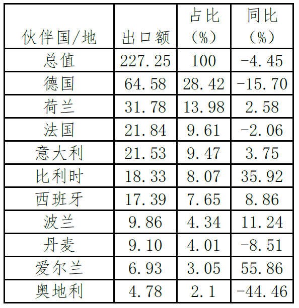 表9. ?2022年前三季度我國醫(yī)藥產(chǎn)品出口歐盟前十大市場(chǎng)