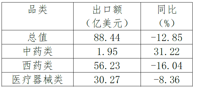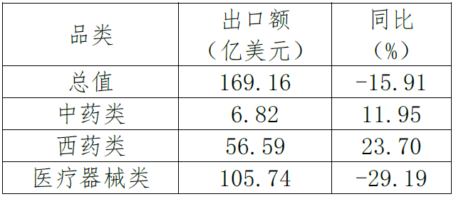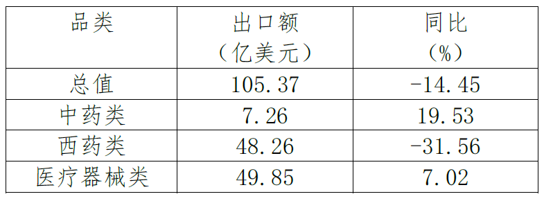 表3. 2022年1-9月醫(yī)療器械類產(chǎn)品出口情況