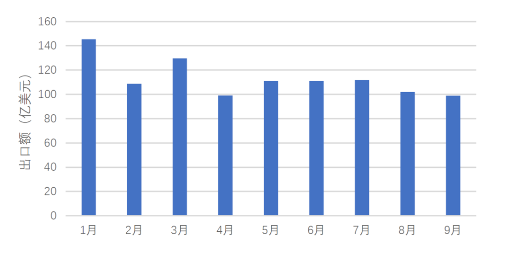 圖1. 2022前三季度我國醫(yī)藥產(chǎn)品出口額月度序列