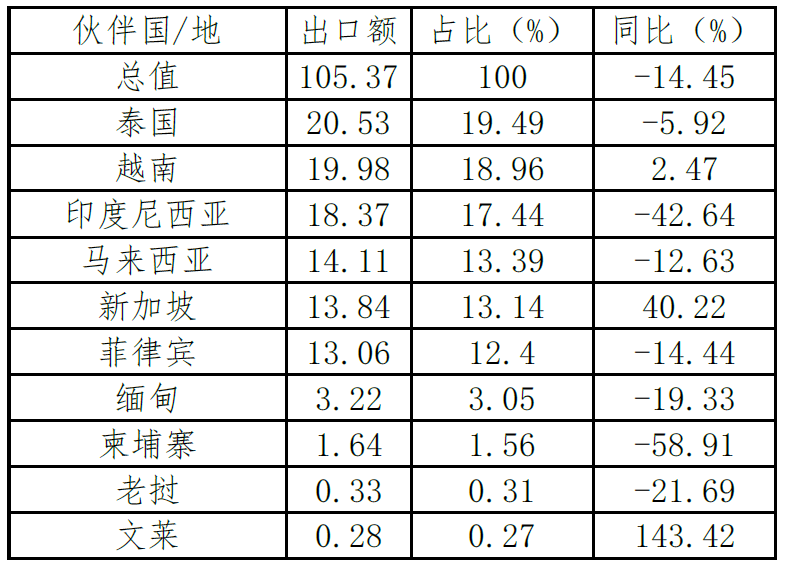 表12. 2022年前三季度我國醫(yī)藥產(chǎn)品出口東盟前十大市場(chǎng)
