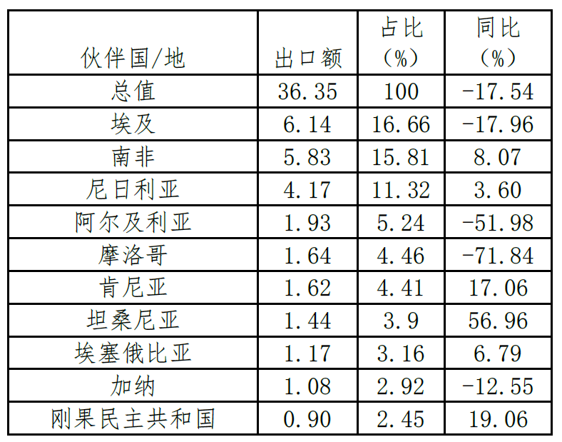 表17. 2022年1-9月對(duì)非洲醫(yī)藥產(chǎn)品出口額、同比