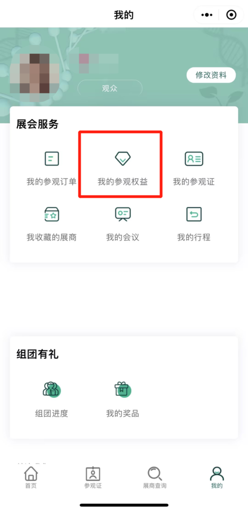 登記成功后,點擊小程序下方工具欄【參觀證】,獲取專屬【電子胸卡】。