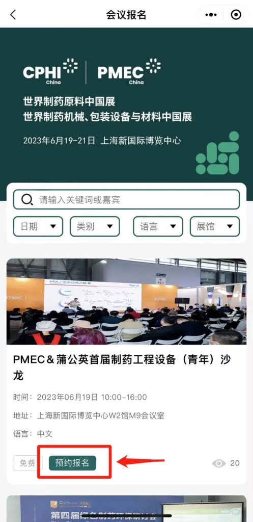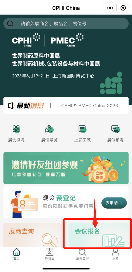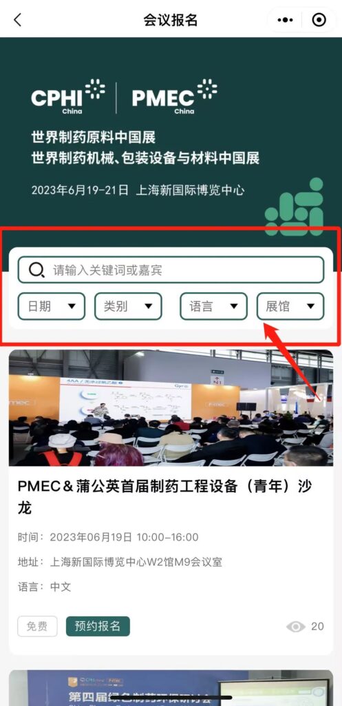 微信搜索“CPHI China”,在“小程序”欄找到,進入后點擊右上角“添加到我的小程序”,隨時查閱展會信息 。