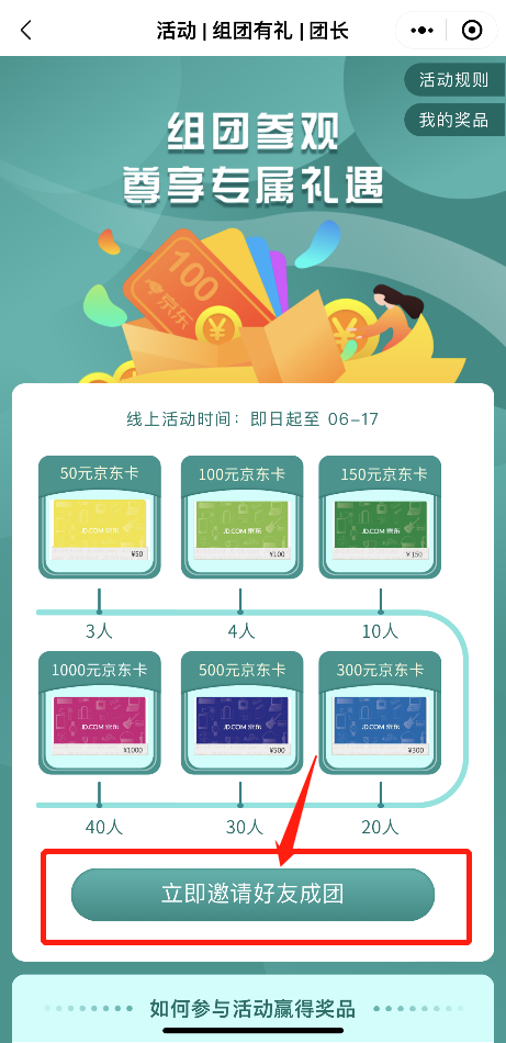 點擊【立即邀請好友成團】轉發(fā)給微信好友。