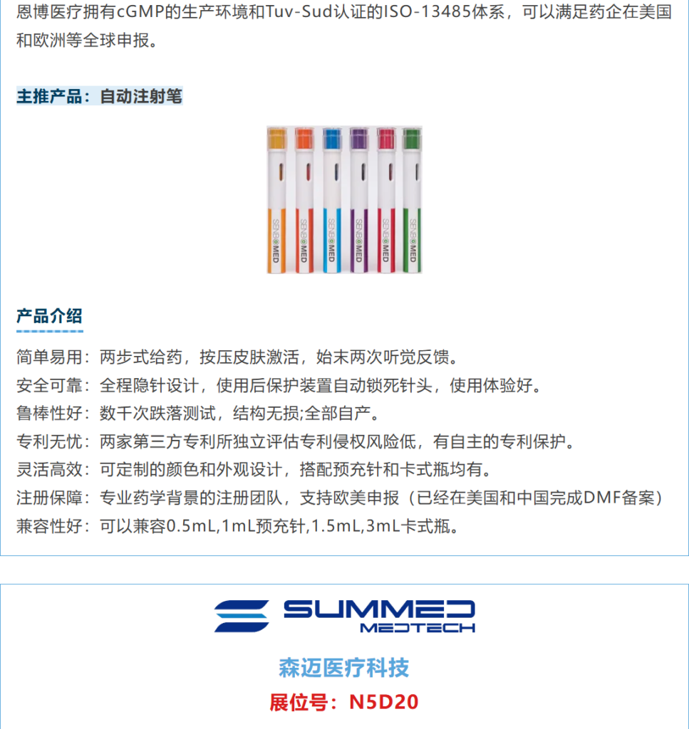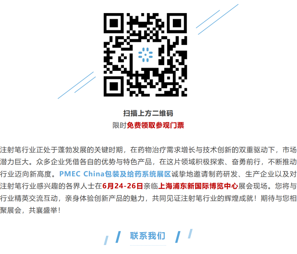 為助力注射筆企業(yè)實(shí)現(xiàn)創(chuàng)新發(fā)展,6月24-26日,第十八屆世界制藥機(jī)械、包裝設(shè)備與材料中國(guó)展——包裝及給藥系統(tǒng)展區(qū)將在上海浦東新國(guó)際博覽中心展示一批行業(yè)內(nèi)優(yōu)質(zhì)的注射筆及其配件產(chǎn)品,為制藥研發(fā)與生產(chǎn)企業(yè)全方位展現(xiàn)注射筆行業(yè)的嶄新風(fēng)貌與新時(shí)代的發(fā)展趨勢(shì),助力企業(yè)把握行業(yè)脈搏,實(shí)現(xiàn)創(chuàng)新突破與合作共贏。