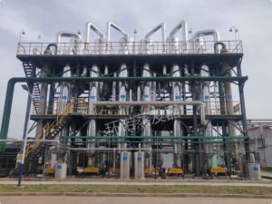 主推產(chǎn)品:MVR蒸發(fā)器、多效蒸發(fā)器 多效蒸發(fā)是傳熱過程,是將多個(gè)蒸發(fā)器串聯(lián)運(yùn)行的蒸發(fā)操作,是將前效的二次蒸汽作為下一效的加熱蒸汽的串聯(lián)蒸發(fā),使蒸汽熱能得到多次利用,從而提高熱能的利用率,多效蒸發(fā)多用于水溶液的處理,是沸騰和冷凝換熱的過程。在多效蒸發(fā)中,各效的操作壓力,相應(yīng)的加熱蒸汽溫度與溶液的沸點(diǎn)一次降低。 |